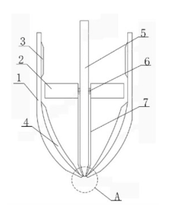 该技术提供一种能够在水流的作用下实现对喷头主体的搅动,以避免喷头主体内产生水垢而将喷水口堵死的适用于蒸汽处理的自清垢喷头。技术方案是:该适用于蒸汽处理的自清垢喷头包括喷头主体以及设置在喷头主体内的螺旋盘2和扰动装置,螺旋盘与喷头主体相对转动设置,螺旋盘垂直于水流方向设置,扰动装置安装在螺旋盘上,并随螺旋盘同步转动。